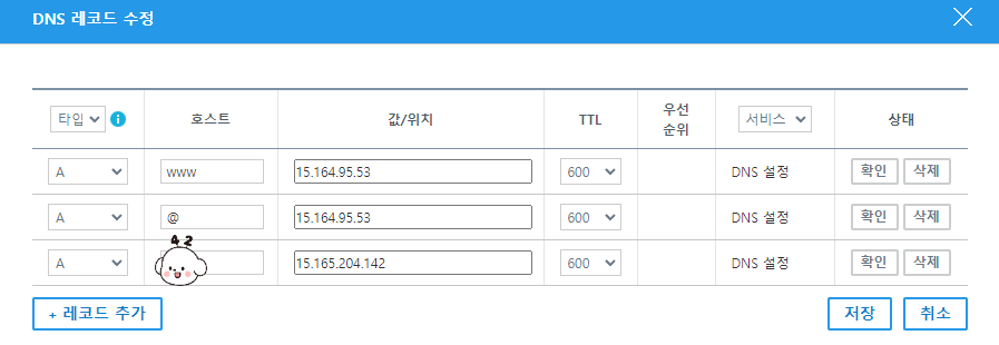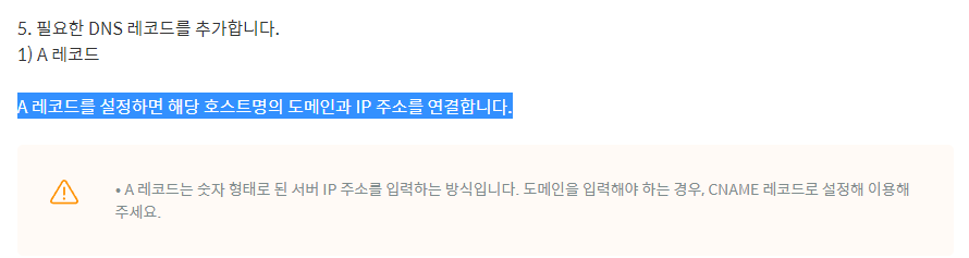 아래와 같이 도메인에 연결할 ip주소를 등록할 수 있다.