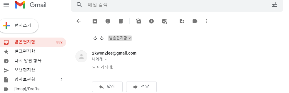 내가 지정한 이메일로 메일이 온 것을 확인할 수 있다!