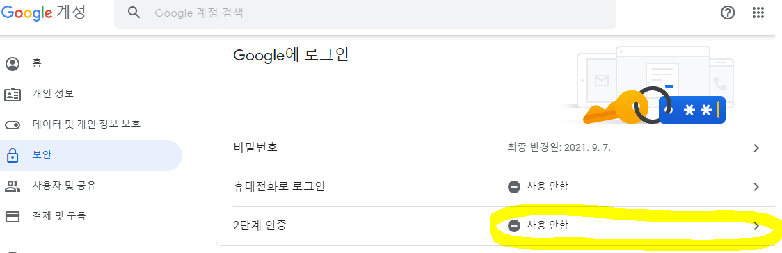 앱 비밀번호를 사용하기 위해선 2단계 인증이 필요하다.