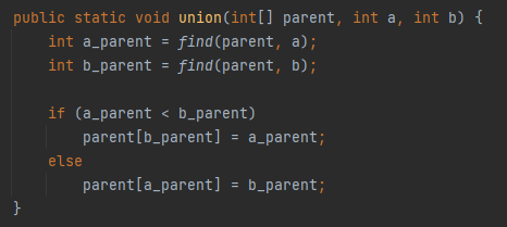 아까 집합을 구분짓는 것은 각 집합의 '부모'원소라고 했으니, B 집합의 부모를 A집합의 부모로 교체해주면 된다.