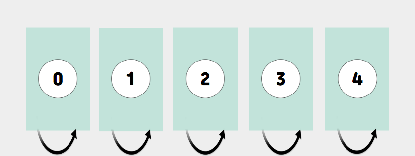 즉, 0은 부모가 0인 집합, 1은 부모가 1인 집합.....4는 부모가 4인 집합에 속해있는 상태다.