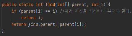 자, 이제 자신이 속한 집합을 찾는 find 연산을 코드로 구현해보자!