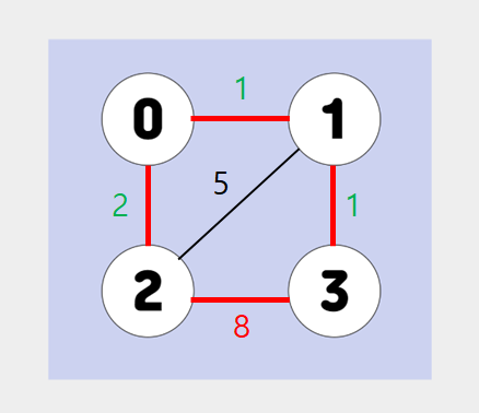2. costs 배열을 처음 부터 돌며 연결할 양쪽 섬의 부모가 같은지 판별한다.