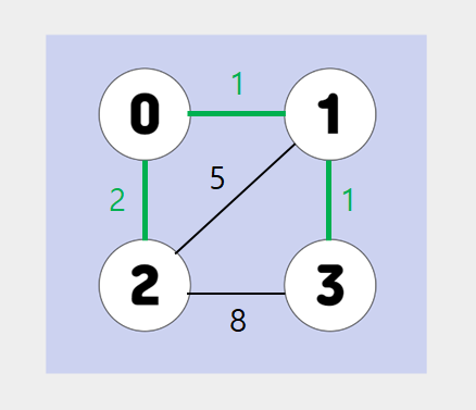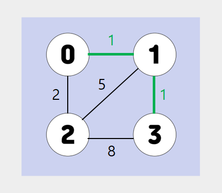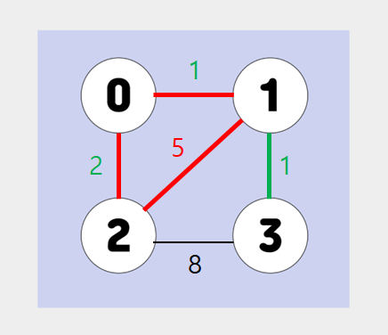 Costs : [[0,1,1],[0,2,2],[1,2,5],[1,3,1],[2,3,8]]