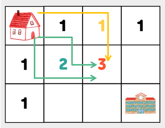 세 가지 경로수가 (1, 2)에 합쳐지는 것이다.