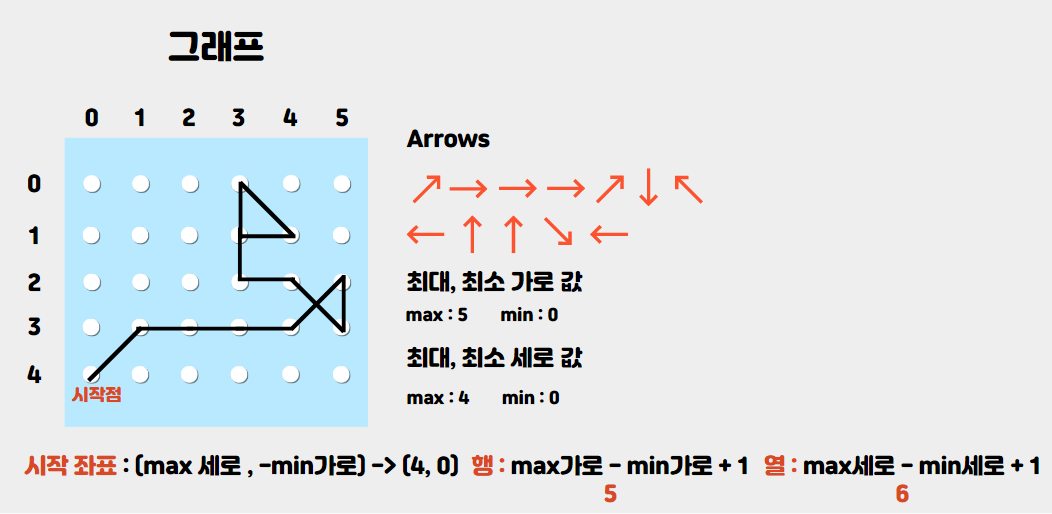 먼저, 화살표가 움직인 범위를 사각형(행렬) 기준으로 구해보자.