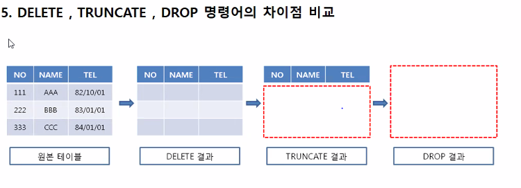 drop은 테이블 자체를 삭제
