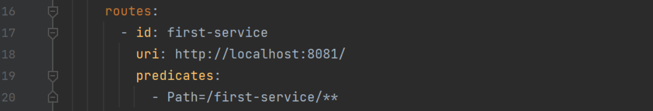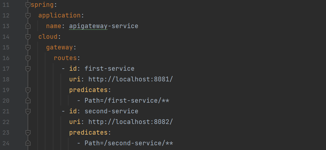 - predicates : 조건→ 클라이언트가 first-service/로 시작하는 요청을 하면 지정한 uri (localhost:8081/)로 가겠다.
