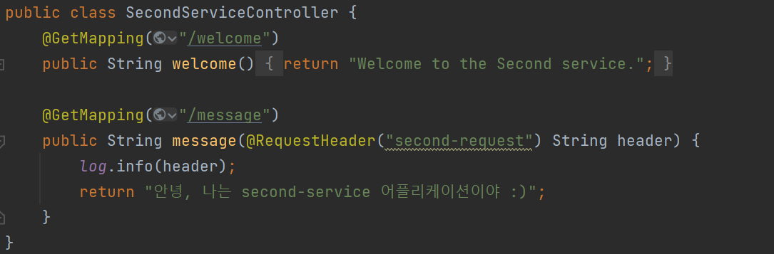 second-service의 컨트롤러에서 메소드를 구현해놓자.