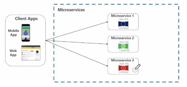 위 그림처럼 마이크로 서비스가 3개가 있다고 가정했을 때, 클라이언트 쪽에서 직접 호출을 한다고 보자