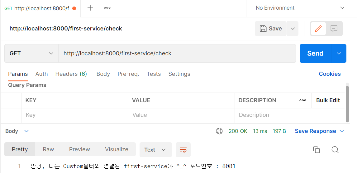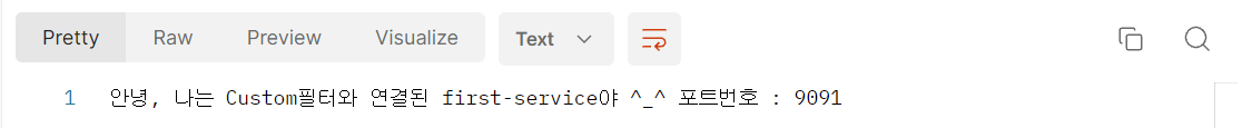 return String.format("안녕, 나는 Custom필터와 연결된 first-service야 ^_^ 포트번호 : %s"