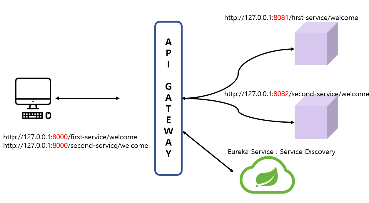 - API Gateway Service 프로젝트 : eureka client, 8000포트