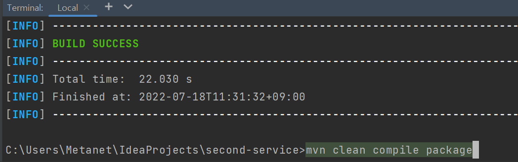 mvn clean compile package 명령어를 통해 jar파일을 만들자