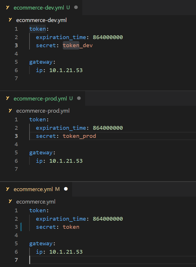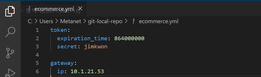 지금까지는 ecommerce.yml 파일을 공통적으로 user-service, geteway에 적용했다.