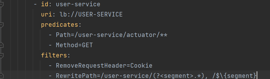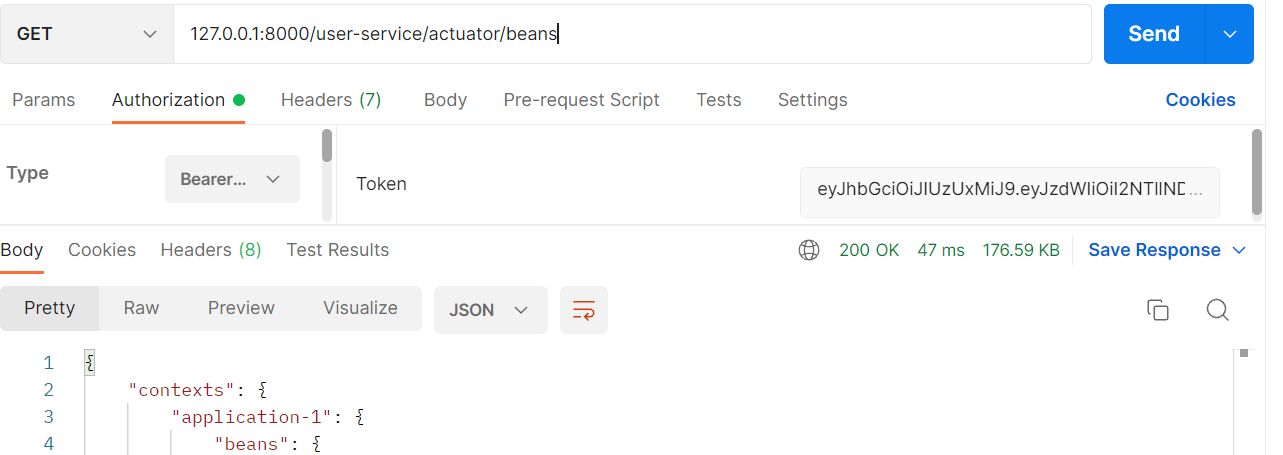 즉, user-service/actuator/beans 요청을 보내면 gateway가 user-service로 /actuator/beans요청을 전달해준다.