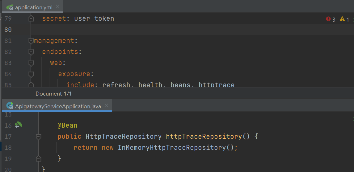 아래에 해당 Bean을 추가시키는 이유는 httptrace 기능을 사용하기 위함이다.