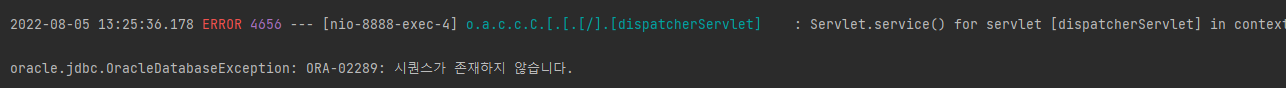 oracle을 사용하고 있어서 pk를 시퀀스로 자동 생성을 하려고 했습니다. console을 보니까 시퀀스를 생성하지 않고 조회만 합니다. 당연히 시퀀스가 없다는 에러메시지만 뜨고 테스트 에러가 떴습니