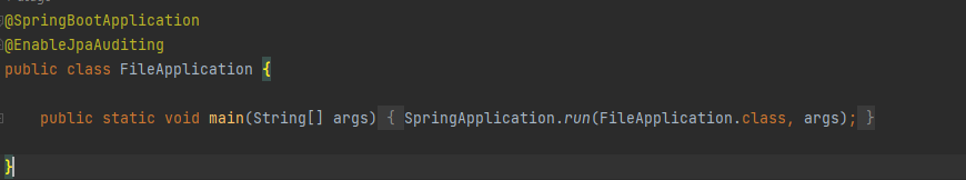 수정, 생성시간을 갱신하기 위해 @EntityListeners를 넣어두고, FileApplication에 다음과 같이 JpaAuditing 어노테이션을 추가해준다.
